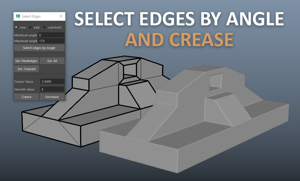 Select edges by angle and crease for Maya
